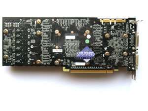 | Каждая карта имеет 896 МБ памяти GDDR3 SDRAM, размещенной в 14 микросхемах на лицевой стороне PCB Микросхемы памяти Hynix (GDDR3). Микросхемы расчитаны на максимальную частоту работы в 1250 (2500) МГц. | ![]() |