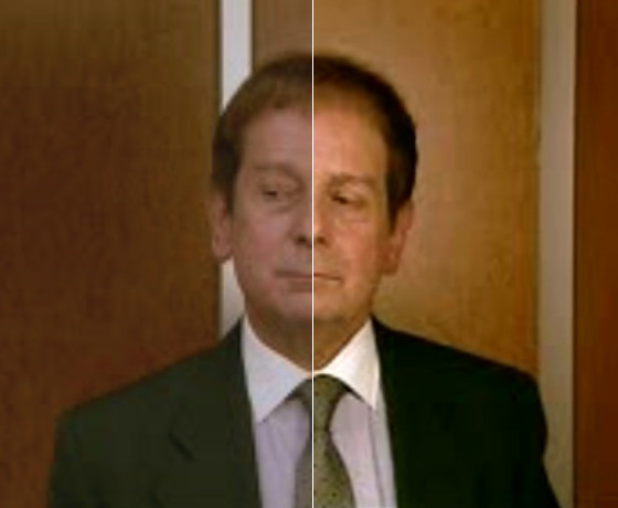 И это не рекламный пример, где ужасное видео магически превращается в HD ролик, почти как в голливудских блокбастерах, а реальная работа vReveal. Как видно, большее влияние на качество оказывает изменение яркости и контрастности. Также, видно небольшое улучшение разрешения (см. на воротник и другие линии). Но в целом никаких чудес, как и должно было быть.