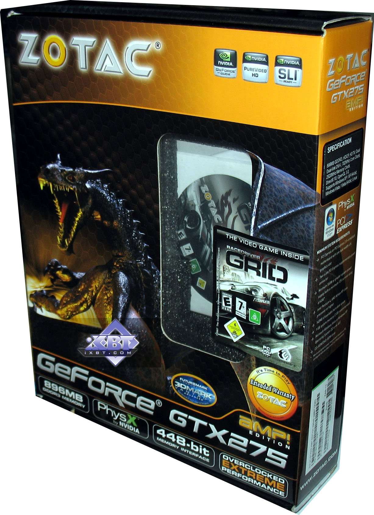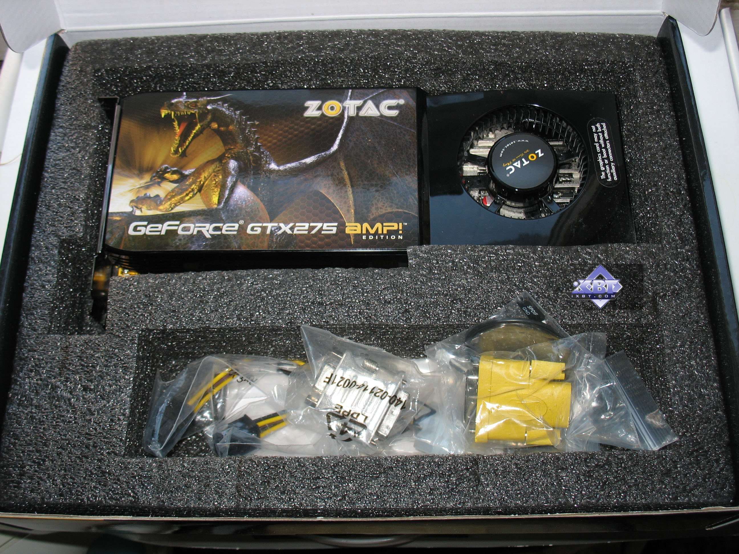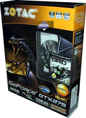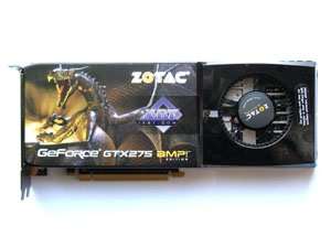 Zotac Geforce GTX 275 AMP! Edition 896MB PCI-E — такой же референс, но с более приятным комплектом, а также сильно повышенными частотами работы. Имеется пятилетняя гарантия на продукт.