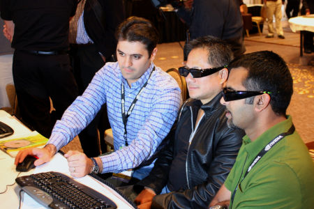 Любопытно было узнать, что на выставке была представлена российская компания 3DreamTeam. На стенде они показывали свои приложения: модель вертолета, модель бизнес-школы СКОЛКОВО и трехмёрный интерактивный мир Vizerra. Для создания которых использовались технологии компании Nvidia, и не только графические, но и PhysX. Виртуальные миры посетил и сам Дженсен, используя при этом стереоочки 3DVision.