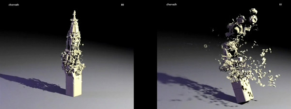 Для примера, подобные эффекты использовались в совсем новом кинофильме «Трансформеры: Месть падших», в одной из последних сцен этого фильма, когда Разрушитель (Devastator) крошит пирамиду: