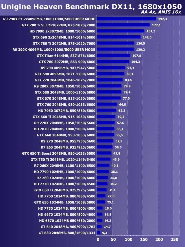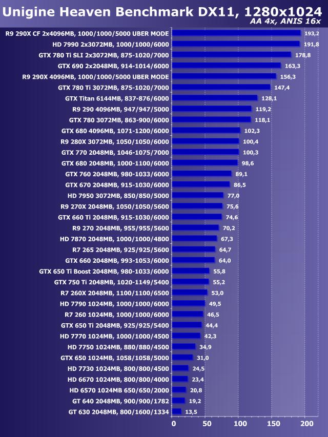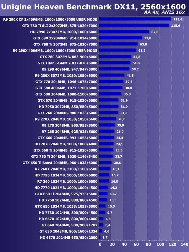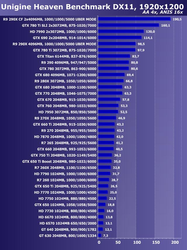 Unigine Heaven Benchmark DirectX 11, AntiAliasing+Anisotropy, Windows 7 64 bit