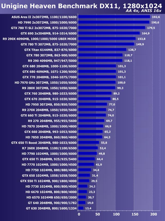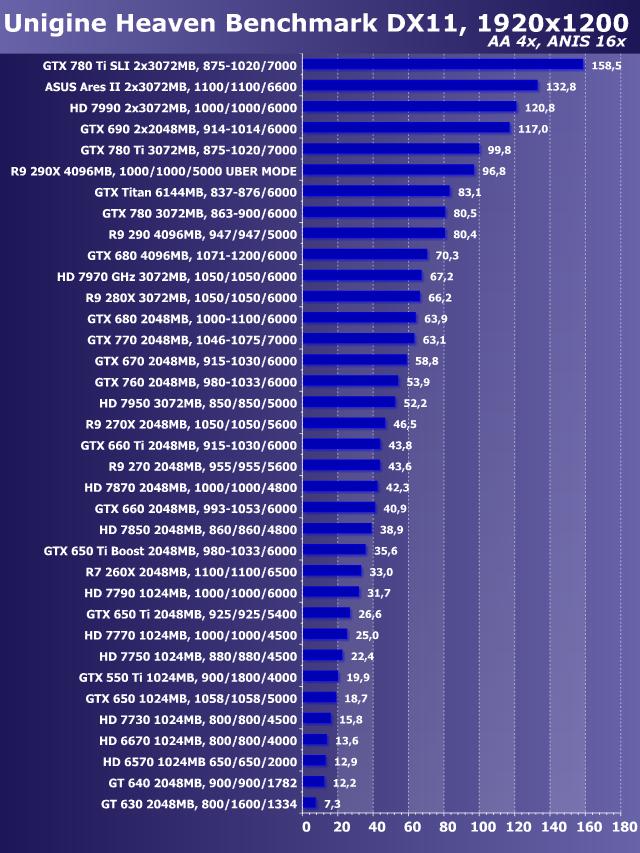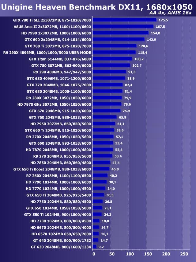 Unigine Heaven Benchmark DirectX 11, AntiAliasing+Anisotropy, Windows 7 64 bit
