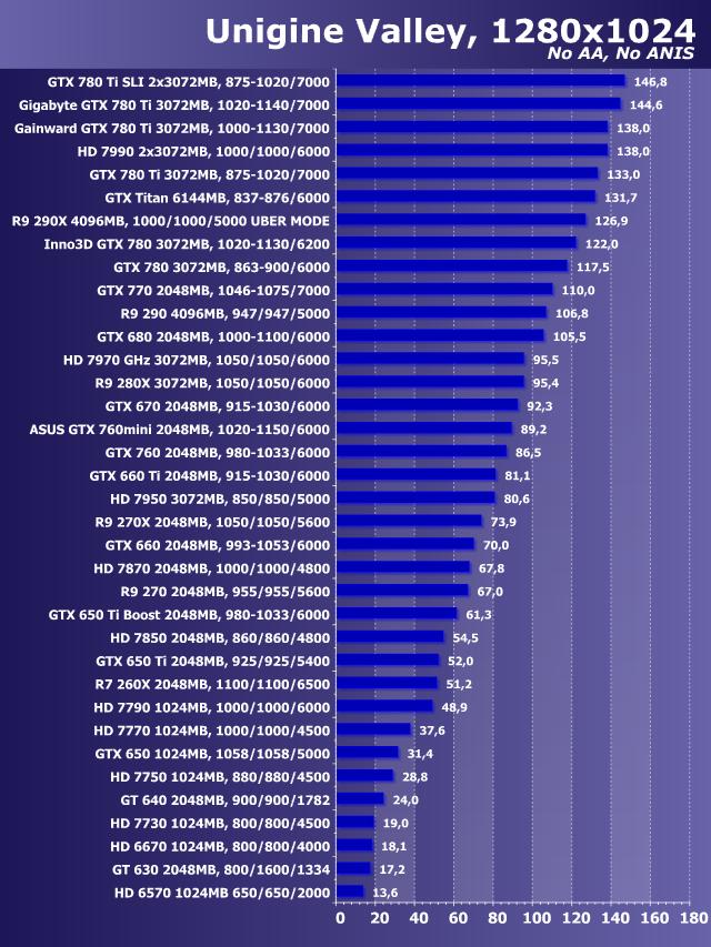 Unigine Valley Benchmark, 1280×1024, Windows 7 64 bit