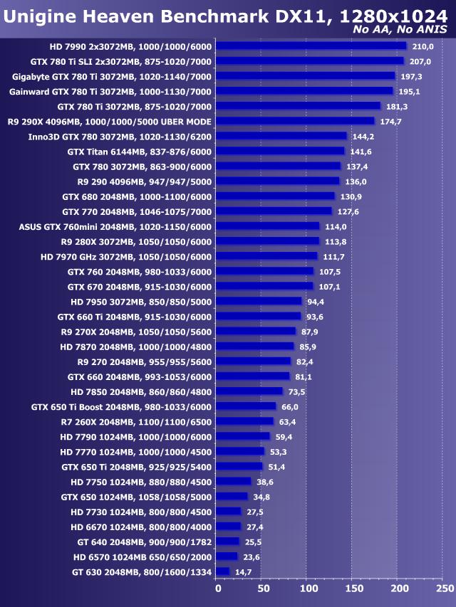 Unigine Heaven Benchmark DirectX 11, 1280×1024, Windows 7 64 bit
