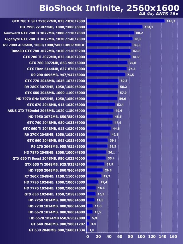 BioShock Infinite, 2560×1600, Anti-aliasing 4x, Anisotropy 16x, Windows 7 64 bit