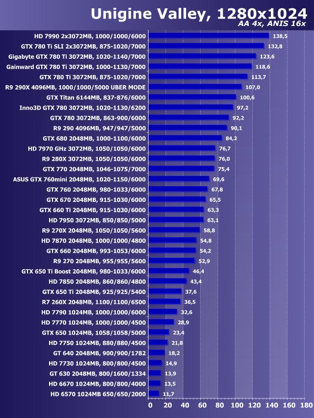 Unigine Valley Benchmark, AntiAliasing+Anisotropy, Windows 7 64 bit