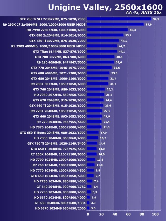 Unigine Valley Benchmark, 2560×1600, AntiAliasing+Anisotropy, Windows 7 64 bit