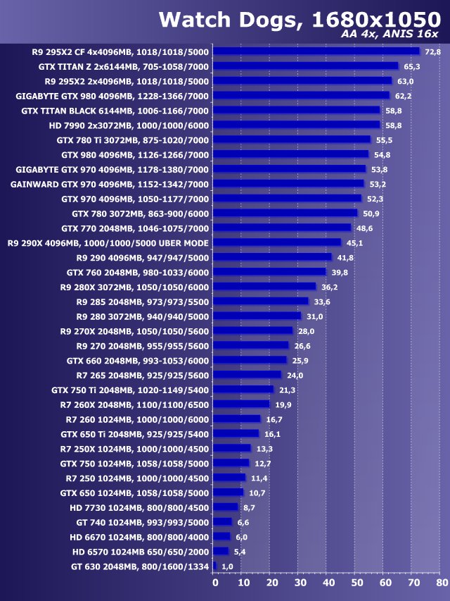 Watch Dogs, 1680×1050, AntiAliasing+Anisotropy, Windows 7 64 bit