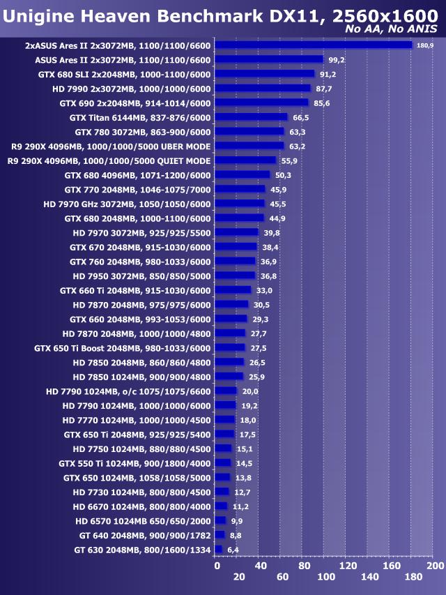 Unigine Heaven Benchmark DirectX 11, 2560×1600, Windows 7 64 bit