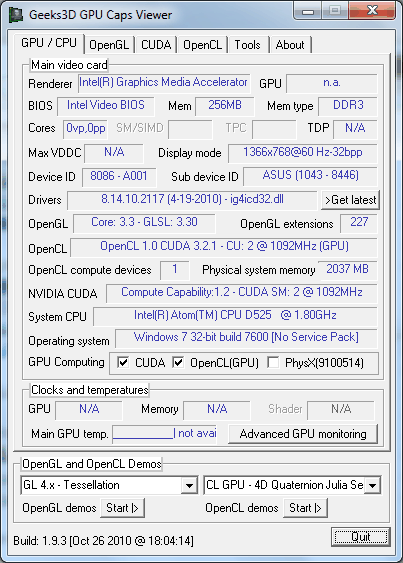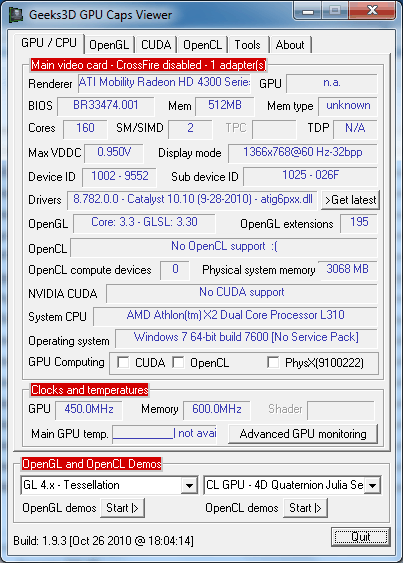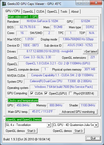 | HTML5, Flash | Zacate (E-350 HD6310) | 1215N (D525 ION2) | K50IP (T3300 G205M) | 5538G (L310 HD4330) |