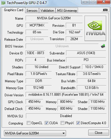 Вторым выбранным для тестов ноутбуком стал Asus K50IP, основанный на процессоре Intel Celeron T3300 и интегрированным в чипсет Nvidia Geforce G205M. Этот вариант интересен тем, что это как раз несколько несбалансированный вариант с более мощным CPU и слабым GPU, о которых как раз и говорили представители AMD, противопоставляя такие системы Zacate. Впрочем, данный Celeron потребляет энергии значительно больше тестового APU, и напрямую их сравнивать сложно. Но всё же будет интересно оценить производительность по-разному сбалансированных конфигураций в различных тестах.