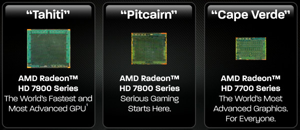 Чуть раньше среднеценовых решений вышла самая бюджетная парочка Radeon HD 7700, что было не совсем обычно, но ничего не изменило по сути. Но эти решения предназначены для самых экономных пользователей, а вот Radeon HD 7800 являются более интересными для требовательных (но не самых-самых энтузиастов) игроков. Новые видеоплаты также основаны на той же самой архитектуре Graphics Core Next (GCN) и функционально полностью идентичны Tahiti, но с уменьшенным количеством большинства исполнительных блоков и со сниженной производительностью. Ну и размеры и сложность чипов отличается значительно, конечно же, вместе с позиционированием на рынке: