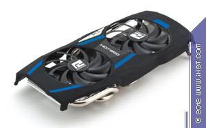 Напомним, что новое ядро, исполненное по 28-нанометровому техпроцессу, потребляет меньше, чем прежние 40-нанометровые ядра, и потому требования к блоку питания изменились, что привело к некоторой эволюции последнего (хотя по-прежнему в основе его цифрового управления лежит ШИМ-контроллер CHiL). Производитель постарался уложиться в стандартные габариты, и PCB получилась привычных размеров: 270×100 мм. Общая длина карты с кулером оказалась всего на пару миллиметров больше (из-за кожуха СО).