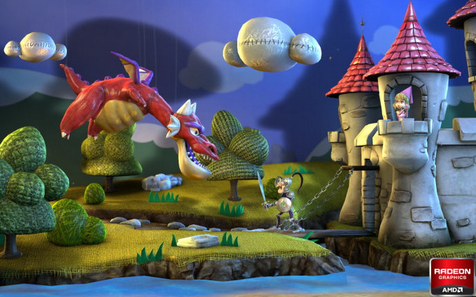 Ну и чтобы дать закипающим мозгам наших читателей отдых от столь скурпулёзного описания возможностей нового продукта компании AMD, мы наконец-то покажем что-то развлекательное — скриншот из демонстрационной программы, сделанной компанией к анонсу первых решений из семейства Southern Islands. Демка называется «Leo» и показывает забавную сказочную сценку с применением современных графических технологий: