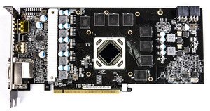 Картa имеeт 2048 МБ памяти GDDR5 SDRAM, размещенной в 8 микросхемах по 2 Гбит (на лицевой стороне PCB). Микросхемы памяти Elpida (GDDR5). Микросхемы рассчитаны на номинальную частоту работы в 1500 (6000) МГц. | ![]() |