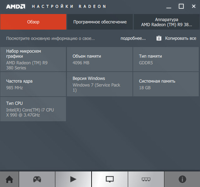 Новый пользовательский интерфейс Radeon Settings