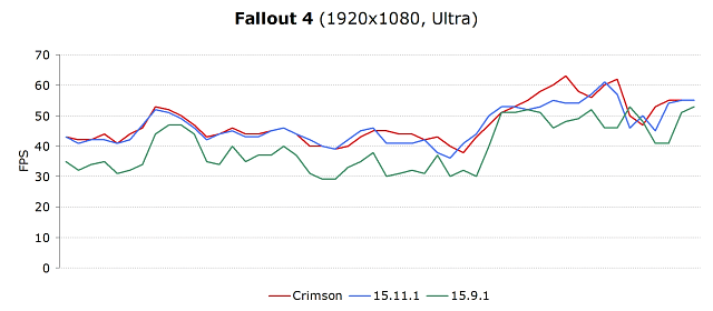Графики производительности в протестированных играх подтверждают наши выводы — особого улучшения производительности по сравнению с последним доступным видеодрайвером Catalyst 15.11.1 Beta не отмечено. А вот драйвер устаревшей версии 15.9.1 явно отстаёт от них практически во всех использовавшихся для тестов играх.
