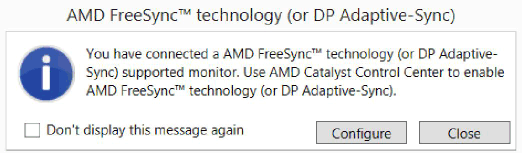 Более того, при первом же подключении монитора с поддержкой FreeSync к видеокарте на экране появится сообщение с предложением сконфигурировать настройки монитора соответствующим образом — включив описываемую нами сегодня технологию.