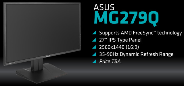 Монитор Asus MG279Q интересен тем, что это — монитор типичного размера в 27 дюймов и разрешением 2560×1440, но с LCD-панелью типа IPS, которая отличается лучшей цветопередачей и другими характеристиками, такими как хорошие углы обзора. Также монитор интересен тем, что он поддерживает динамическую частоту обновления в пределах от 35 до 90 Гц.