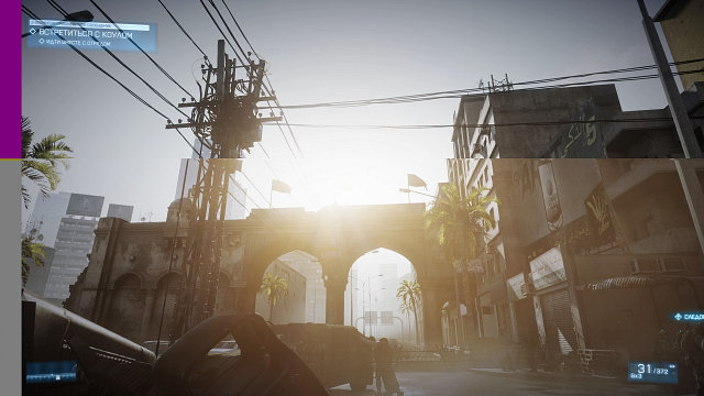 Выше показан уменьшенный кадр, а при нажатии на нем откроется полноразмерная картинка. Как видите, реальное изображение на экране в таком случае составлено из кусков соседних кадров, в том числе неравномерно, когда от одного из кадров взята лишь узкая полоска, а соседние занимают заметно большую площадь экрана. Такое бывает крайне редко, в основном на системах CrossFire, состоящих из нескольких графических процессоров, но все же бывает.