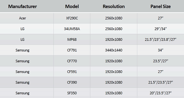 Как видите, мониторы готовятся разные, с размерами экрана от 20 до 34 дюймов и различным разрешением. Разве что типы устанавливаемых в них матриц пока что неизвестны.