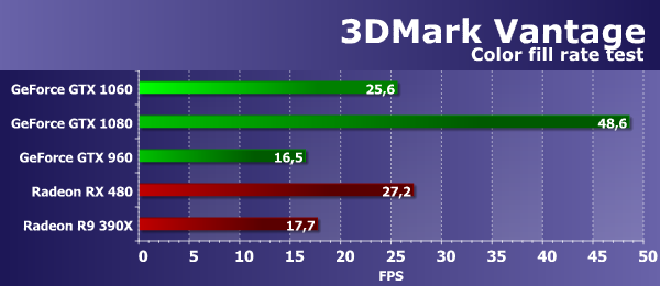 Синтетические тесты из пакета 3DMark Vantage могут показать нам то, что мы ранее упустили. Feature тесты из этого тестового пакета обладают поддержкой DirectX 10, до сих пор актуальны и интересны тем, что отличаются от наших. При анализе результатов новейшей видеокарты GeForce GTX 1060 в этом пакете мы сделаем какие-то новые и полезные выводы, ускользнувшие от нас в тестах из пакетов семейства RightMark.