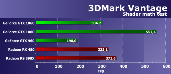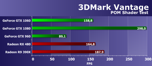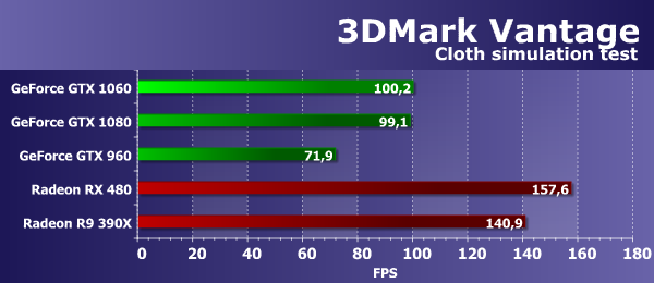 В данном случае, важны и математическая и текстурная производительность, и в этой «синтетике» из 3DMark Vantage новая плата GeForce GTX 1060 показала довольно неплохой результат, оказавшись на 78% быстрее аналогичной модели предыдущего поколения, основанного на базе схожего графического процессора архитектуры Maxwell — GTX 960. А старшая модель текущего поколения GTX 1080 на основе GP104 все так же почти вдвое быстрее новинки. Среднеценовая плата Nvidia в этом тесте показала результат почти на одном уровне с Radeon RX 480 (разница составила лишь 4%), но обе они отстали от R9 390X.