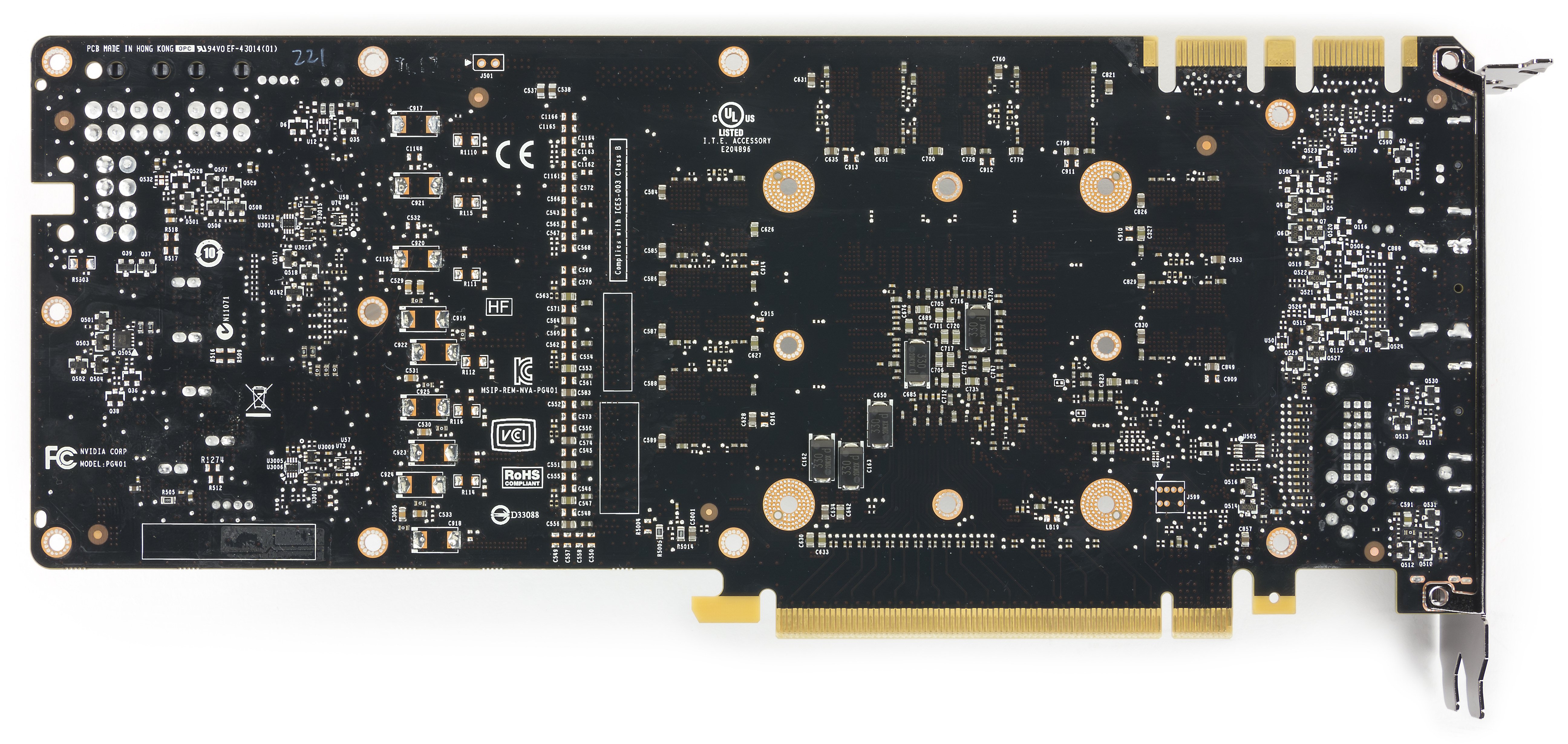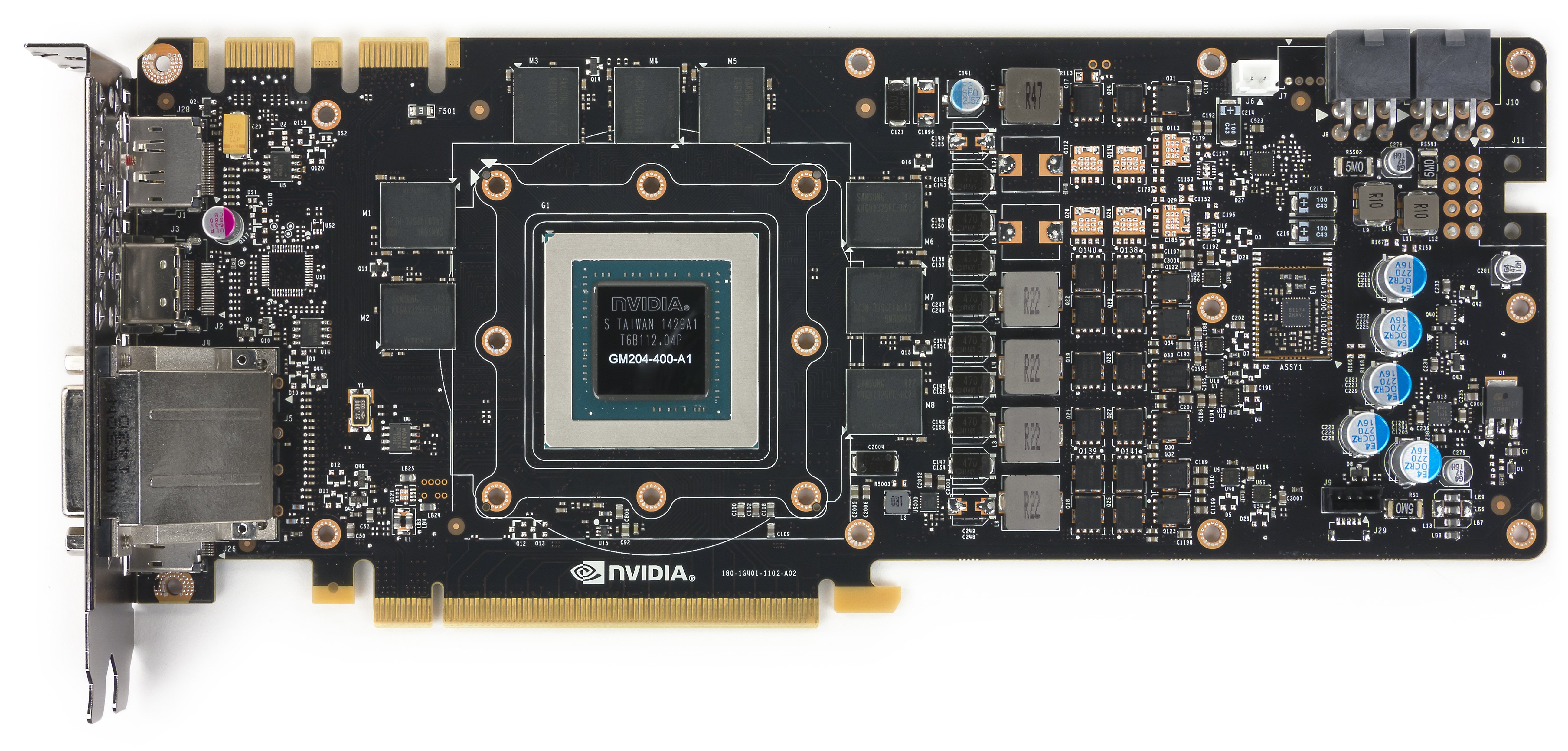 Понятно, что PCB абсолютно разные, потому что шины обмена с памятью отличаются: 256 бит у GTX 980 и 192 бит у GTX 1060. Правда, у последнего есть два пустых посадочных места под микросхемы памяти, и можно предположить, что на плате разведена шина памяти в 256 бит, однако, скорее всего, эти пустые места предназначены для организации 128-битной шины на той же PCB с тем же ядром с микросхемами памяти х16 (8×16=128), то есть для будущих более слабых решений типа GTX 1050.