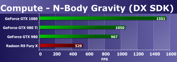 Хотя видеочипы компании AMD с архитектурой GCN до сих пор справляются с подобными задачами лучше решений конкурента в случаях, когда выполняется интенсивная «математика», но новая топовая модель компании Nvidia, основанная на первом игровом чипе Pascal, почти достала Radeon R9 Fury X, не говоря уже о Radeon R9 390X. И это можно назвать отличным результатом, учитывая сложность этих GPU, у Nvidia наконец-то получилось столь производительное решение с точки зрения вычислений.