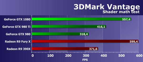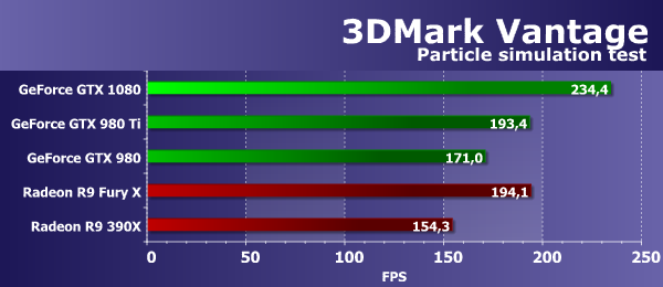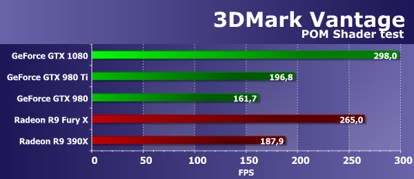 В данном случае, важны и математическая и текстурная производительность, и в этой «синтетике» из 3DMark Vantage новая плата GeForce GTX 1080 показала просто отличный результат, оказавшись в полтора раза быстрее топовой модели предыдущего поколения, основанного на базе лучшего графического процессора архитектуры Maxwell — GTX 980 Ti. А младшая модель GTX 980 на основе GM204 так и вовсе проиграла более 80%. Новая плата Nvidia в этом тесте показала результат заметно лучше, чем Radeon R9 390X и на 12% опередила Radeon R9 Fury X — неплохой результат.