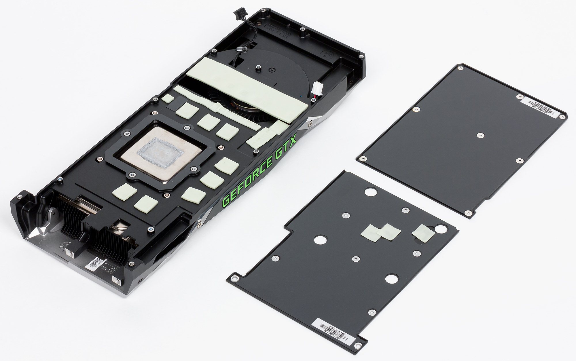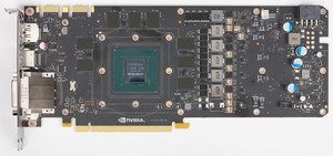 Микросхемы памяти и силовые транзисторы охлаждаются с помощью специальной пластины у кулера. На оборотной стороне PCB установлена пластина, которая через термоинтерфейс