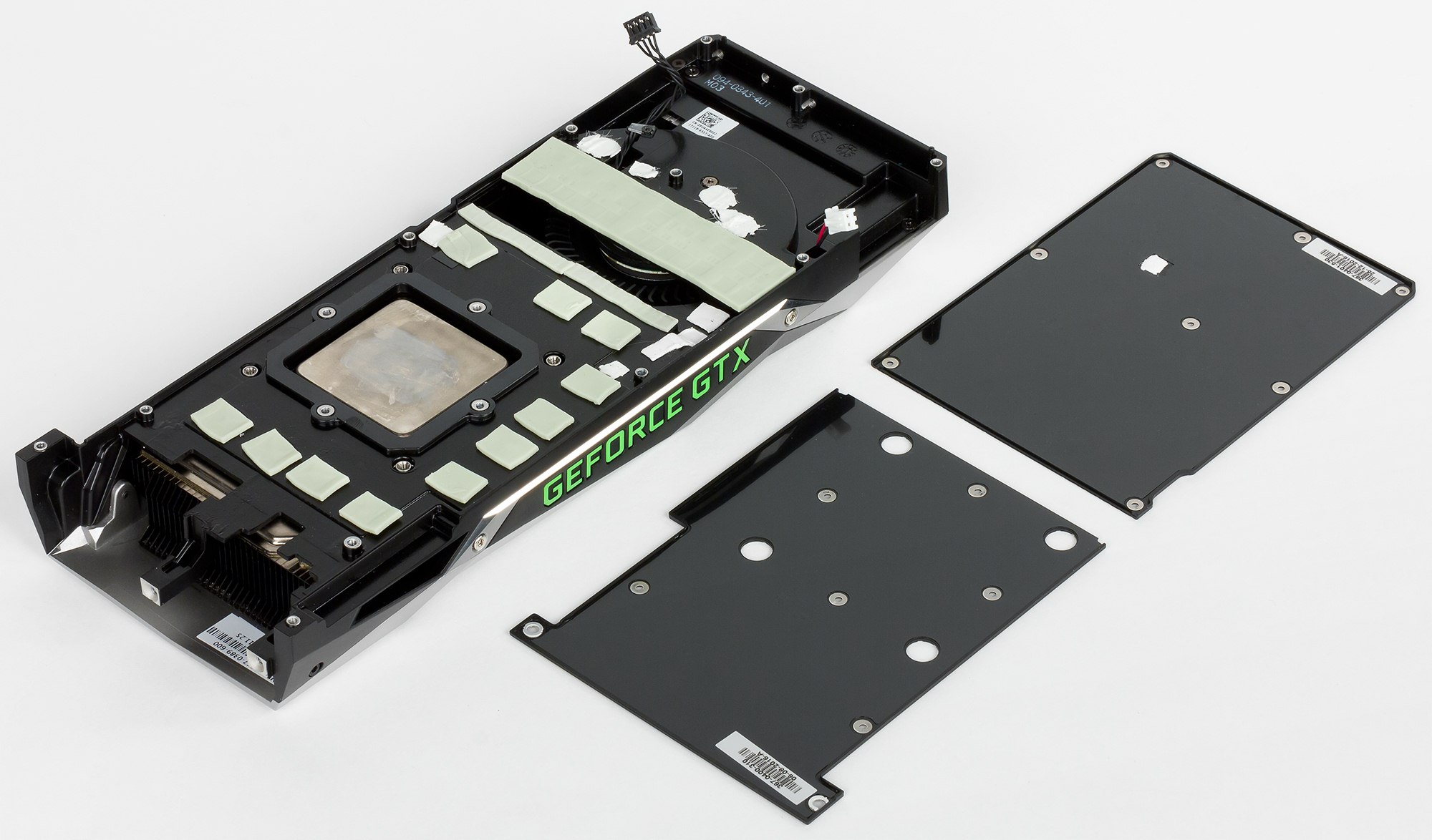 Референсная СО Nvidia имеет традиционную закрытую форму с цилиндрическим вентилятором на конце. Радиатор, прижимающийся к ядру, основан