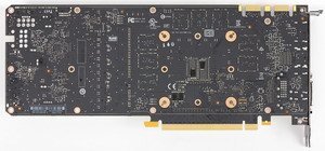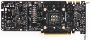 Микросхемы памяти и силовые транзисторы охлаждаются с помощью специальной пластины кулера. На оборотной стороне PCB установлена пластина, которая является, по сути, декорацией