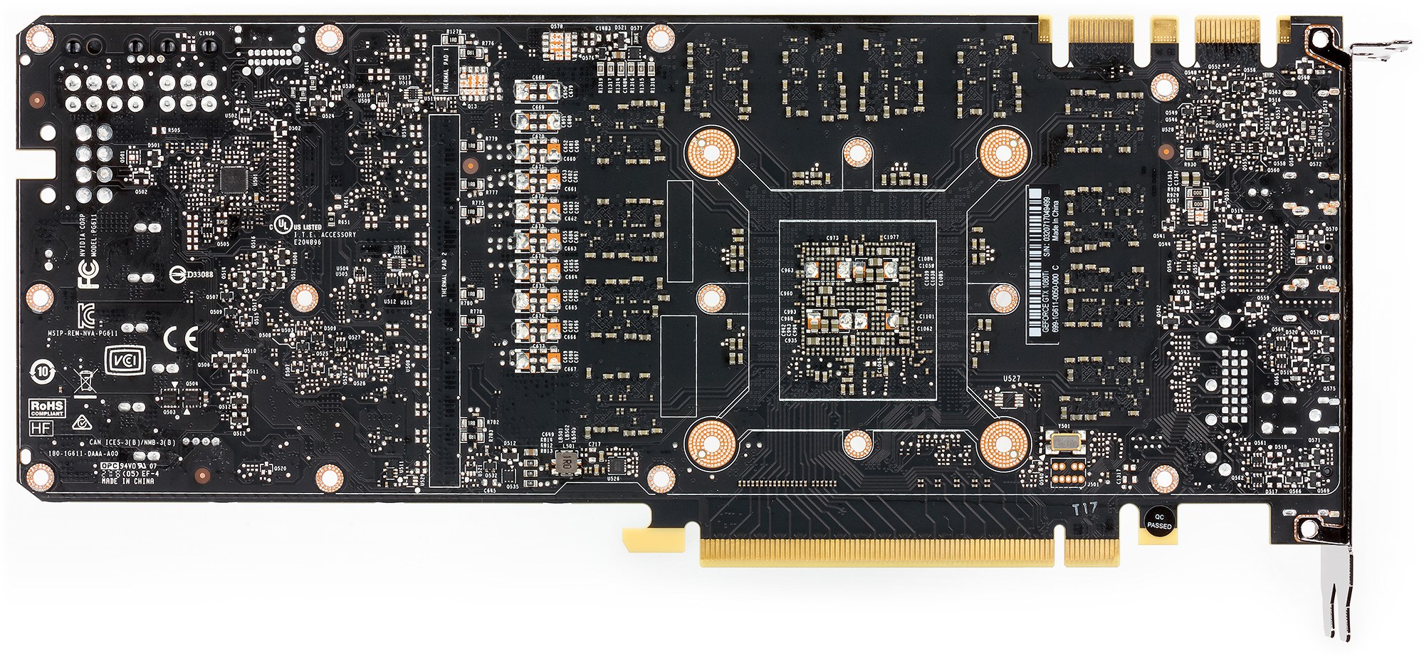 Понятно, что PCB абсолютно разные, потому что шины обмена с памятью отличаются: 256 бит у GTX 1080 и 352 бита у GTX 1080 Ti. Тут напрашивается сравнение с Titan X (Pascal), потому что
