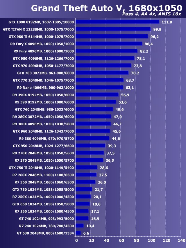 Grand Theft Auto V, 1680×1050, AntiAliasing+Anisotropy, Windows 10 64 bit