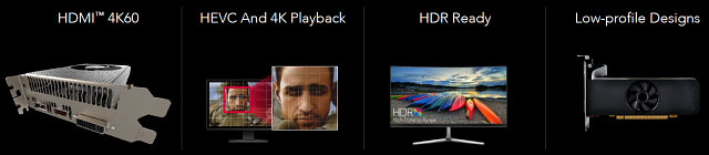 | Поддержка мониторов | Интегрированная поддержка до шести мониторов, подключенных по интерфейсам DVI, HDMI 2.0b и DisplayPort 1.3/1.4 HDR Ready |