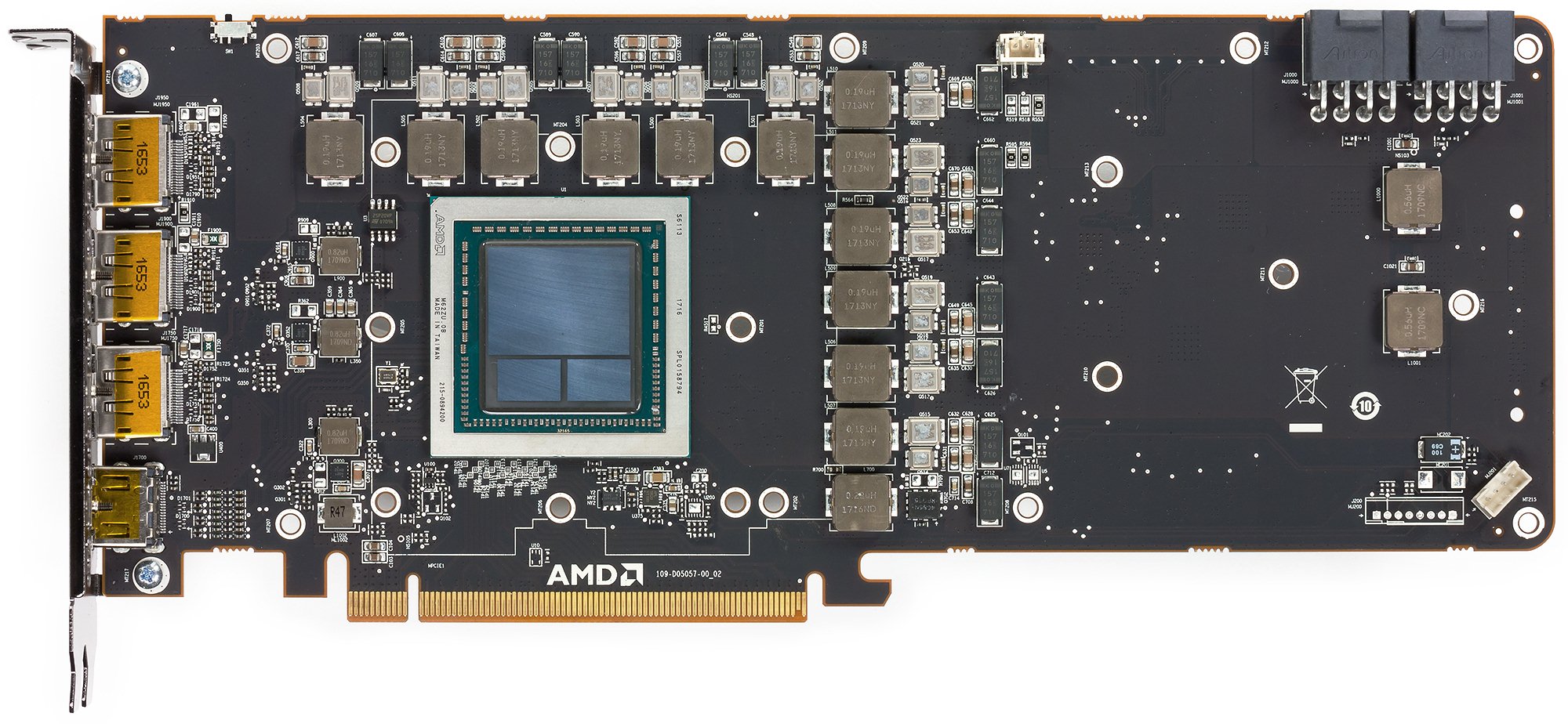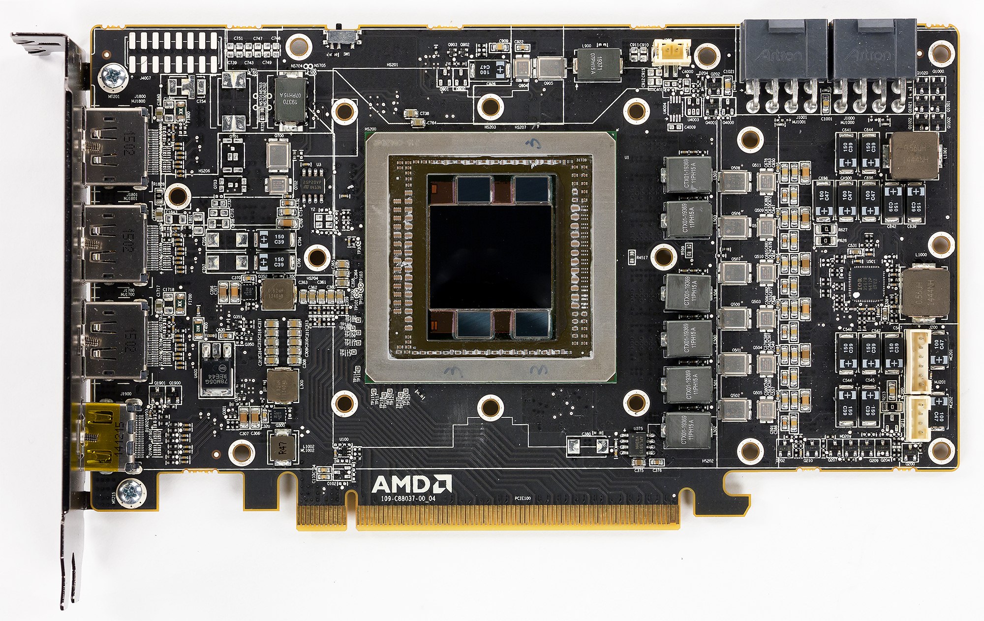 а также разный тип памяти (HBM1/HBM2) сказались на обвязке, и карты выглядят по-разному.