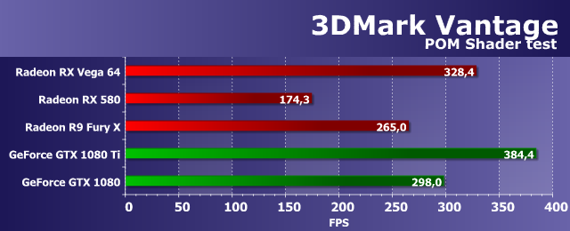 Несмотря на теоретически меньшее количество геометрических исполнительных блоков и отставание по геометрической производительности у чипов конкурента, по сравнению с решениями Nvidia, все платы Radeon в этом тесте работают отлично, обгоняя обе видеокарты GeForce, представленные в сравнении, даже заметно более дорогие. Так, рассматриваемая сегодня плата Radeon RX Vega 64 чуть ли не вдвое обогнала в этом тесте даже GeForce GTX 1080 Ti, не говоря уже о GTX 1080.