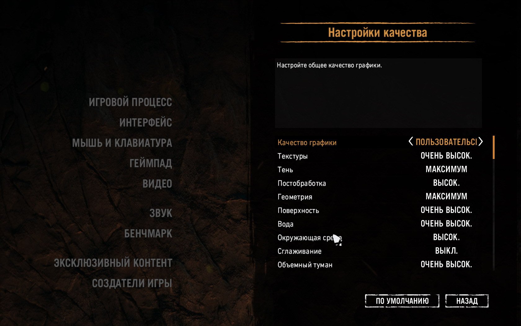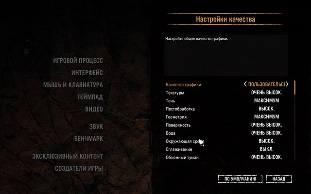 Для тестирования используются встроенные в игру возможности бенчмарка (через начальное меню настроек).